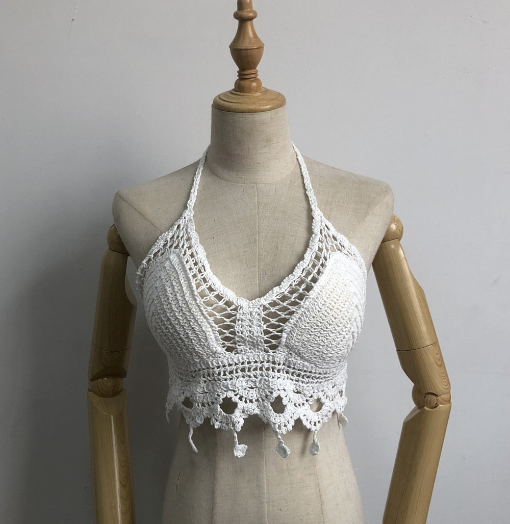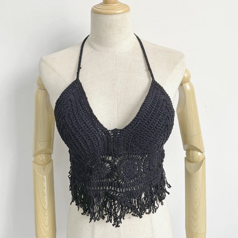 summer holiday beach camis lady sexy tassels crochet camisole women sexy tassels bikini camis female crochet halter bikini tops
